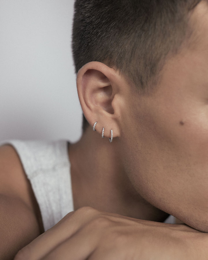 Huggies are commonly slipped in on the ear lobes, but trust us, these tiny sparklers look stunning worn anywhere on the helix (top part of the ear) or forward helix (this is the top front of the ear) too. You can also try wearing it on the tragus, which is the area in front of the ear canal, for a feminine, bohemian vibe.