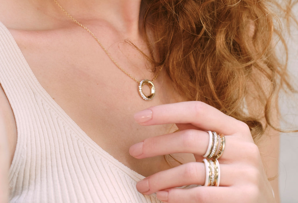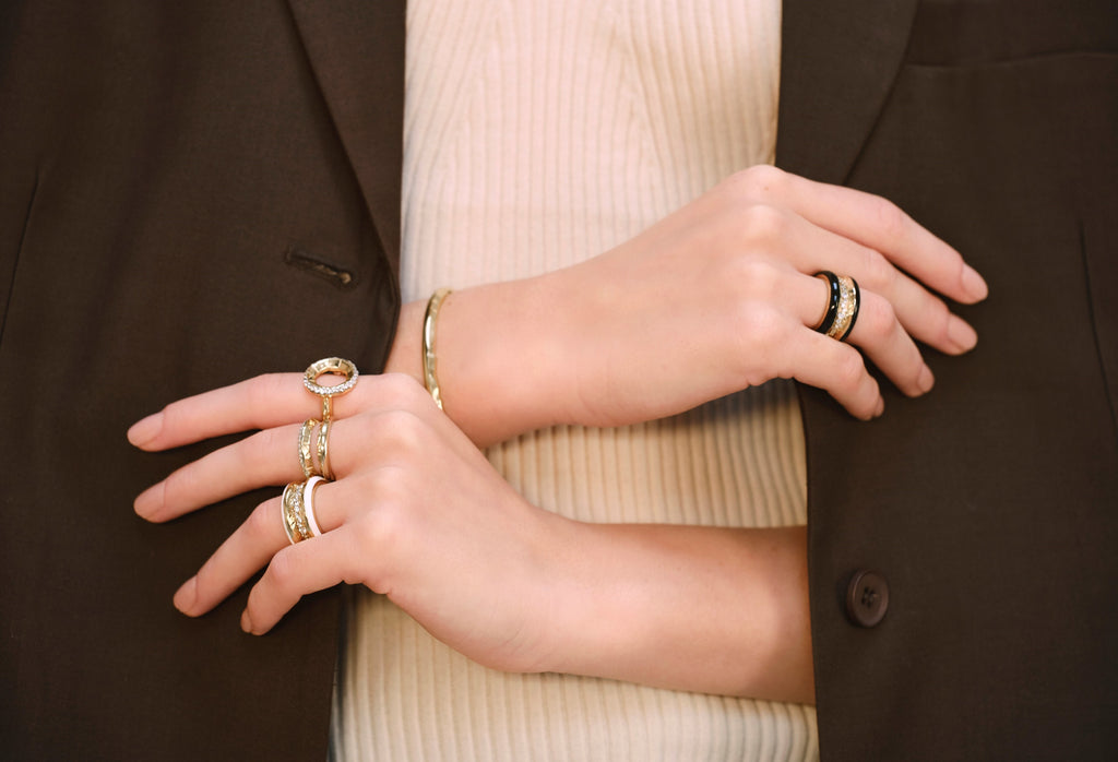 HIDDEN by MARKS is defined by its minimalist, sculptural aesthetic, where recycled gold and silver are meticulously crafted into timeless statement pieces. Each creation is enhanced by intricate details, such as inlaid polished enamel or brilliant-cut diamonds, which reflect the brand’s commitment to both innovation and artistry.