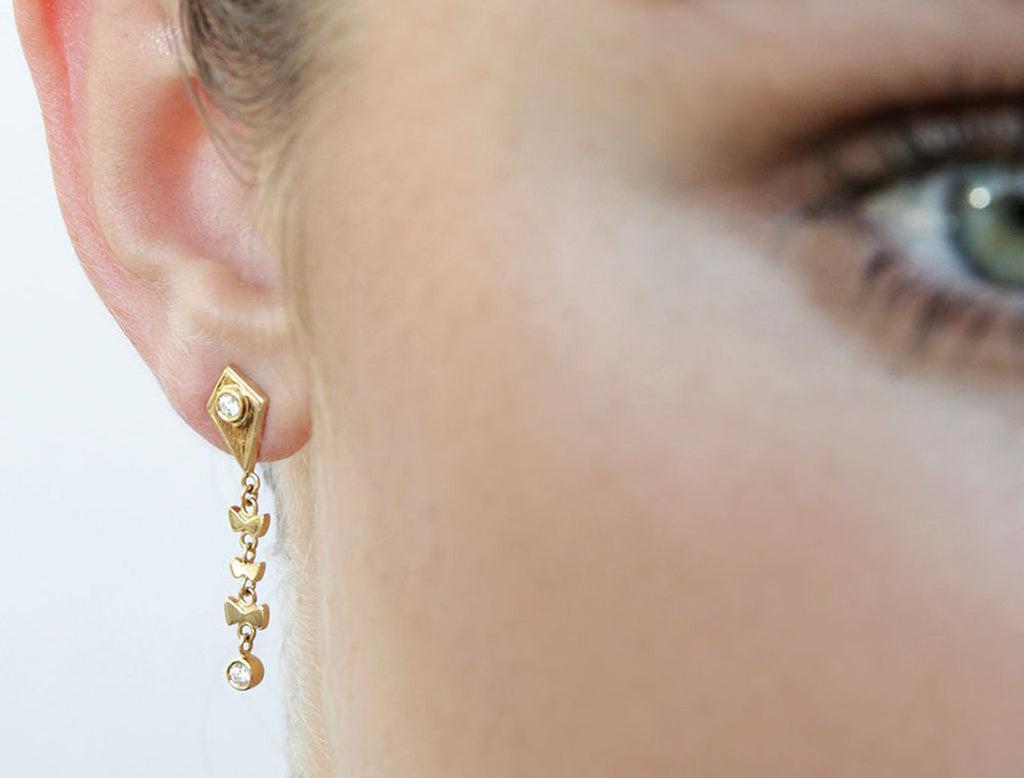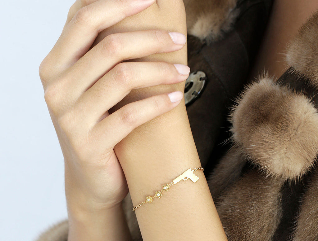 In JOSINA's collections you will find earrings, ear-jackets, necklaces, rings, bracelets and pendants with a fun and humorous tone. Take, for example, a look at the BOO collection, which includes earrings, necklaces and bracelets with small ghost pendants. Or the FLOWER GUN jewellery which depicts a small pistol in gold which shoots with a rain of diamonds. Or the KITE collection where it is a small dragon symbol that shines from your ear or sparkles around your wrist.