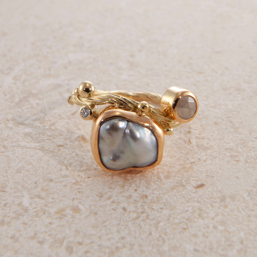 Bergsoe JewellerySeafire 18K & 22K Guld Ring m. Perle & Diamant
