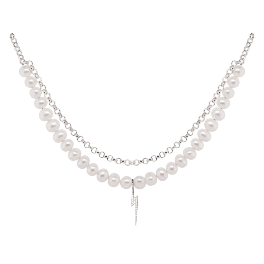 CbyC JewelryBolt Sølv Halskæde m. Perle & Zirkon