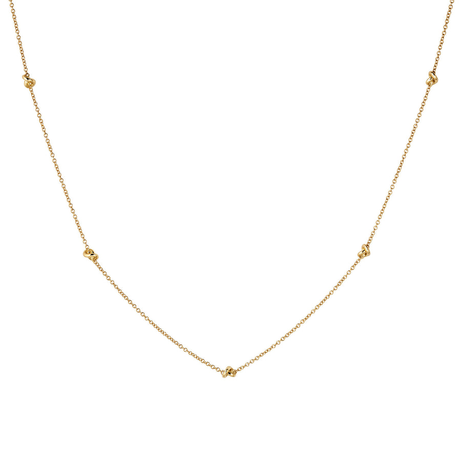 En halskæde i 18 karat guld med udsøgt fremstillede knuder fordelt langs længden, hvilket giver raffineret tekstur og ubesværet elegance. Dette tidløse smykke passer smukt til både afslappede og formelle stilarter. Den seneste tilføjelse til den klassiske og ikoniske The Legacy Knot kollektion.