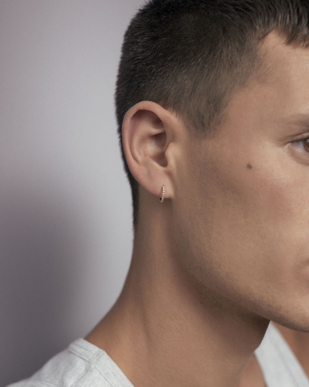 En smuk diamanthuggie, fremstillet af 14 karat slagguld og labgrown diamanter, der passer perfekt til dit øre. Ideel til øreflippen og helix-området. Huggien fås i tre størrelser; 6, 8 og 10.