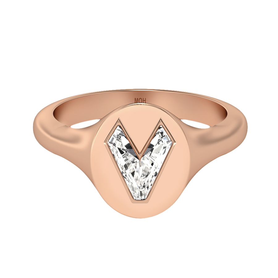 MOHAlfabet 18K Rosaguld Initial V Signet Ring m. Solitaire Lab-Grown Diamant
