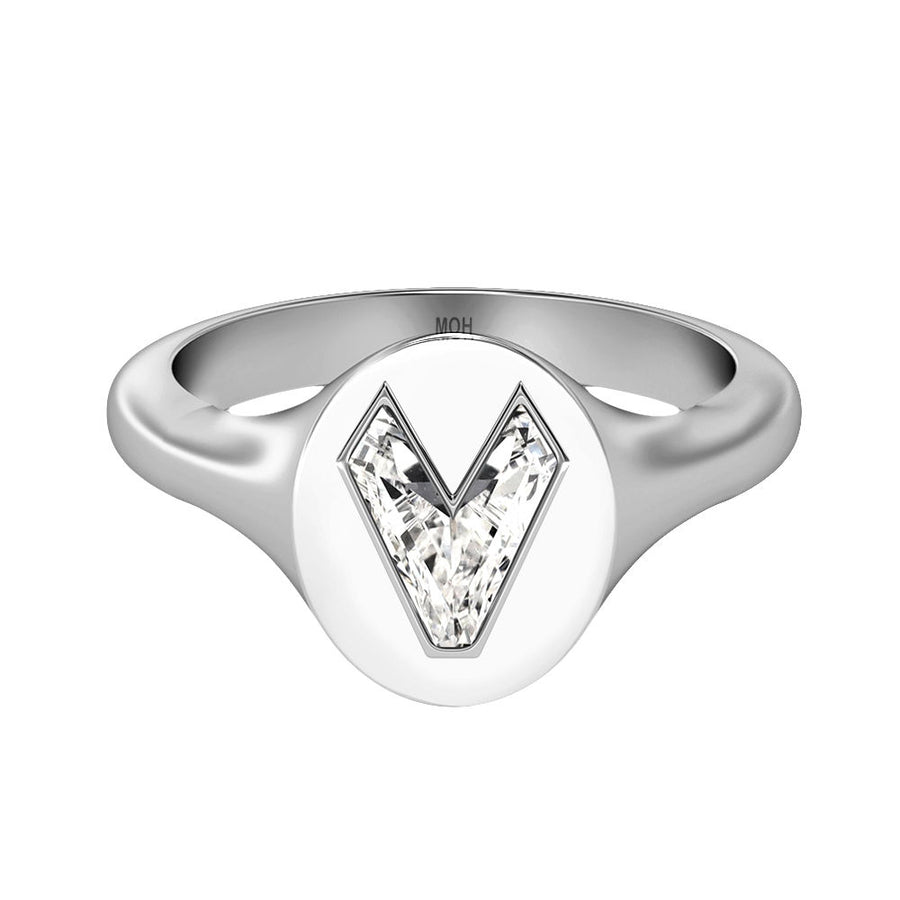 MOHAlfabet 18K Hvidguld Initial V Signet Ring m. Solitaire Lab-Grown Diamant