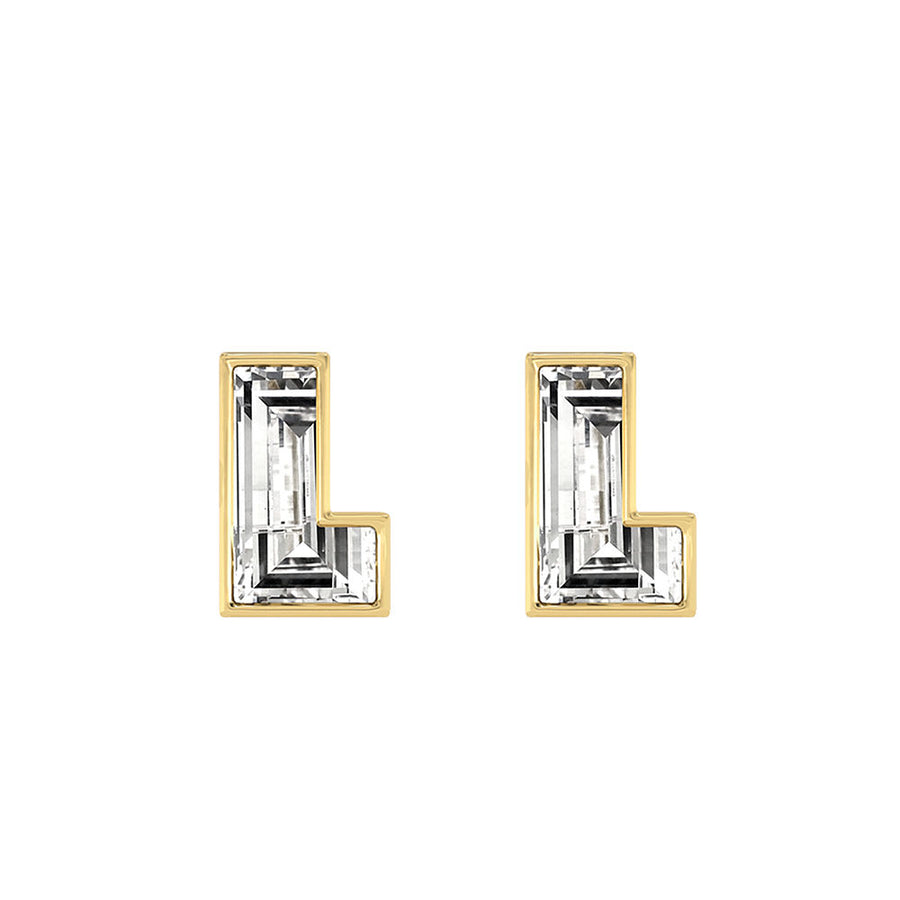 MOHAlfabet Bogstav L 18K Guld, Hvidguld eller Rosaguld Ørestikker m. Solitaire Lab-Grown Diamant