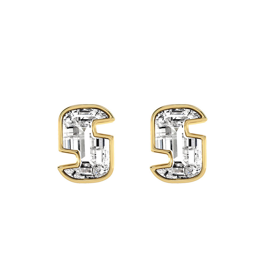 MOHAlfabet Bogstav S 18K Guld, Hvidguld eller Rosaguld Ørestikker m. Solitaire Lab-Grown Diamant