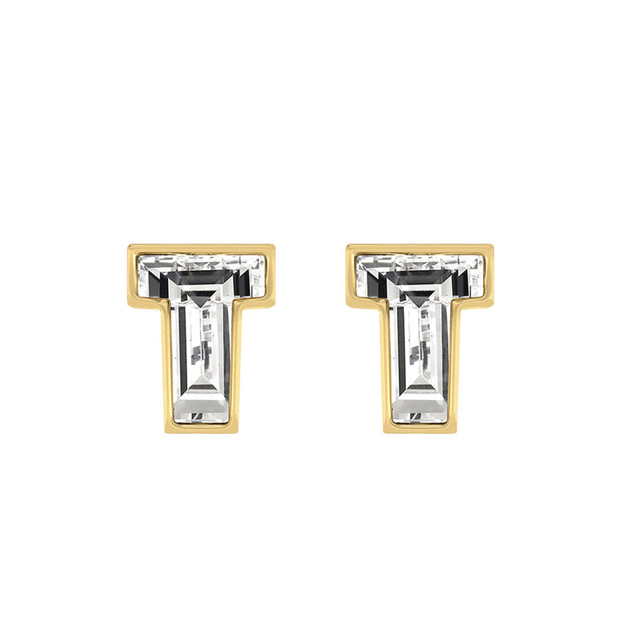 MOHAlfabet Bogstav T 18K Guld, Hvidguld eller Rosaguld Ørestikker m. Solitaire Lab-Grown Diamant