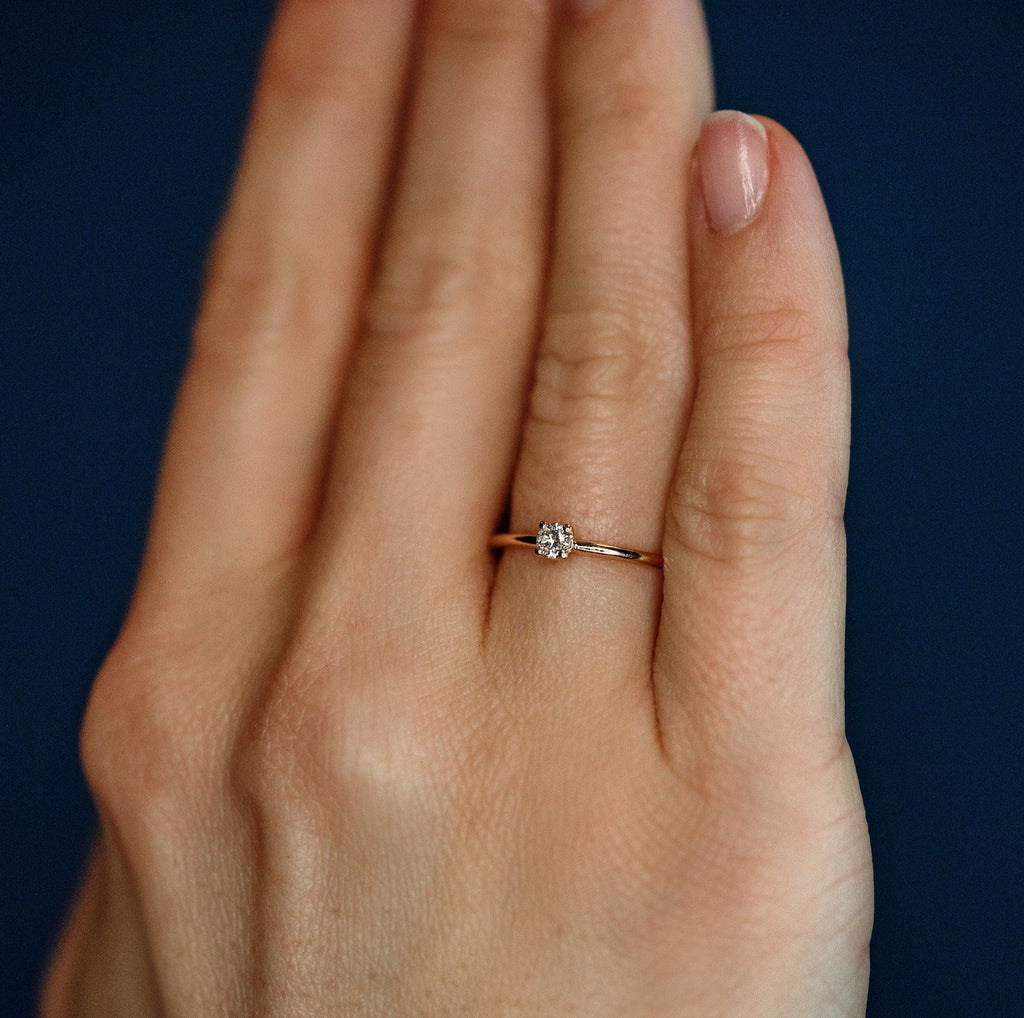 Den klassiske 4 Prongs Stack er en delikat indgrebsring med en fin bar og en smuk lille diamant, der ligger i en lille kurv med Classic 4 Prongs. Stenen sidder lidt højere end skaftet, hvilket gør diamanten flyde elegant over din finger. Således er ringen ideel til stabling og sidder flush med dit bryllupsbånd. Et stykke for evigt og for hver dag, ligesom det burde være. 18 karat guld og en diamant 0,1 ct vægt. Skaftet er 1,2 mm, kronen er 4 mm bred. Vores guld er økologisk finansieret flodguld fra Tyskland, blandet med genanvendt guld (massebalance princip). Vi legering med genanvendt sølv, -Copper og -palladium. Alle vores diamanter har (i det mindste) g farven og (i det mindste) si klarhed. Alle vores diamanter kommer fra Canada (Deviak og Ekati Mine) og blev udelukkende skåret i RJC-certificerede fabrikker. Dine nye smykker blev lavet med hånden - med meget kærlighed og omsorg i vores fabrik i Schwarzwald.