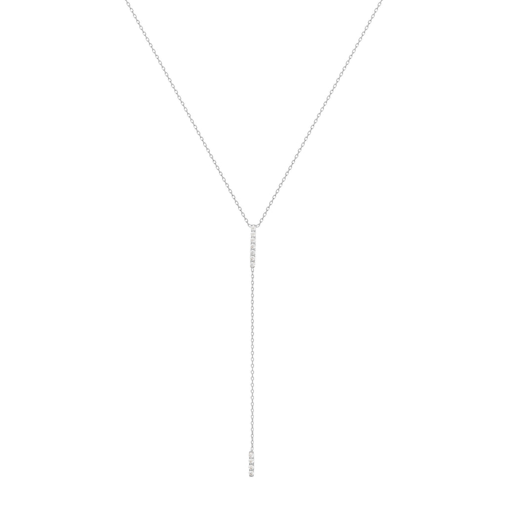 Diese Doppelbalken -Diamantkette ist der Inbegriff der modernen Eleganz und Klasse. Das Design ist einfach und raffiniert und macht es zu einem vielseitigen Stück, das hoch oder runter gekleidet werden kann.