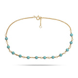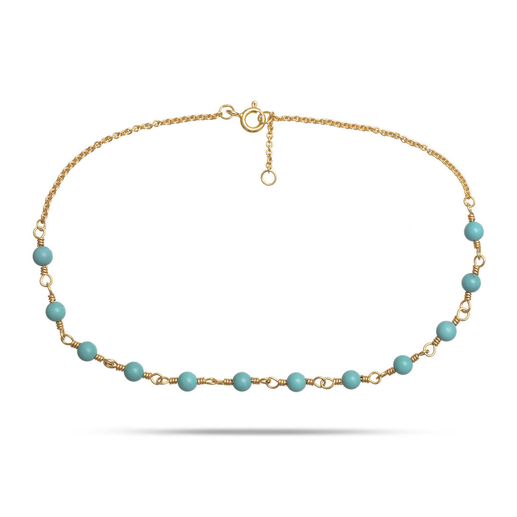 Fußkettchen aus vergoldetem Sterlingsilber mit Türkisbesatz. Farbe: Blau, Gold