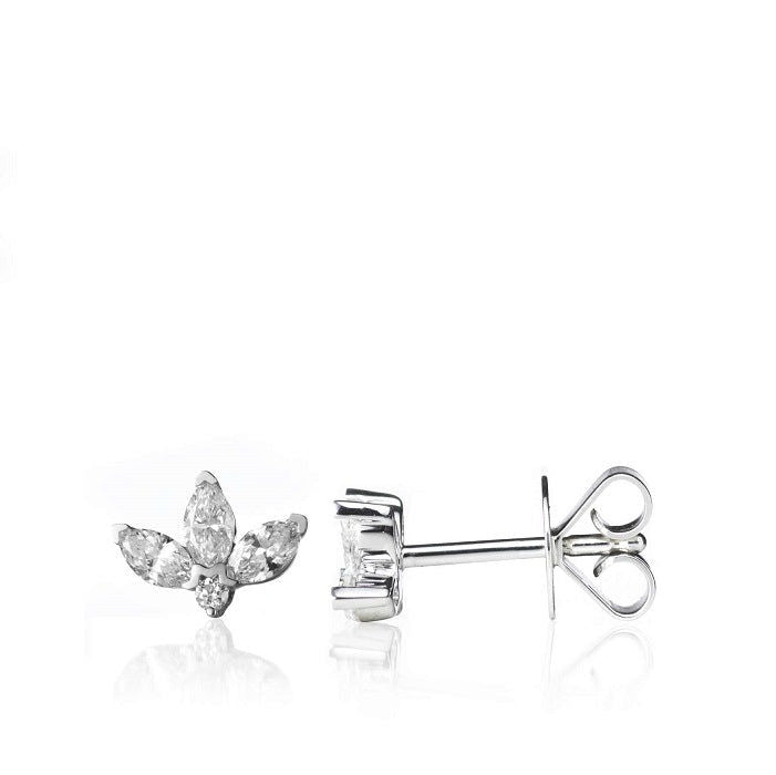 Ohrringe mit drei Blättern, wie kleine, neu gestreckte Blätter nach dem Winter haben endlich den Griff losgelassen. Ein Teil der bewussten Sammlung, die auf dem minimalistischen, skandinavischen Look basiert. 6 Drop-förmige Diamanten, insgesamt 0,30 Karat und 2 Brillants mit insgesamt 0,02 Karat. Die Ohrringe messen 0,8 cm. in Breite. Wählen Sie zwischen 18 Karat -Weiß, Gelb oder Roségold. Der Preis ist für ein Paar.