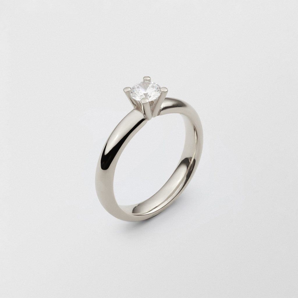 Bonnie, solitaire - Ring in 18K white gold with 0,50ct diamond, 3,7 mm. Bonnie solitaire is a medium-high, soft, characterful ring with an exclusive, smart and luxurious feel. Bonnie is available with diamonds in two sizes; 0,30ct and 0,50ct. This is with 0,30ct.