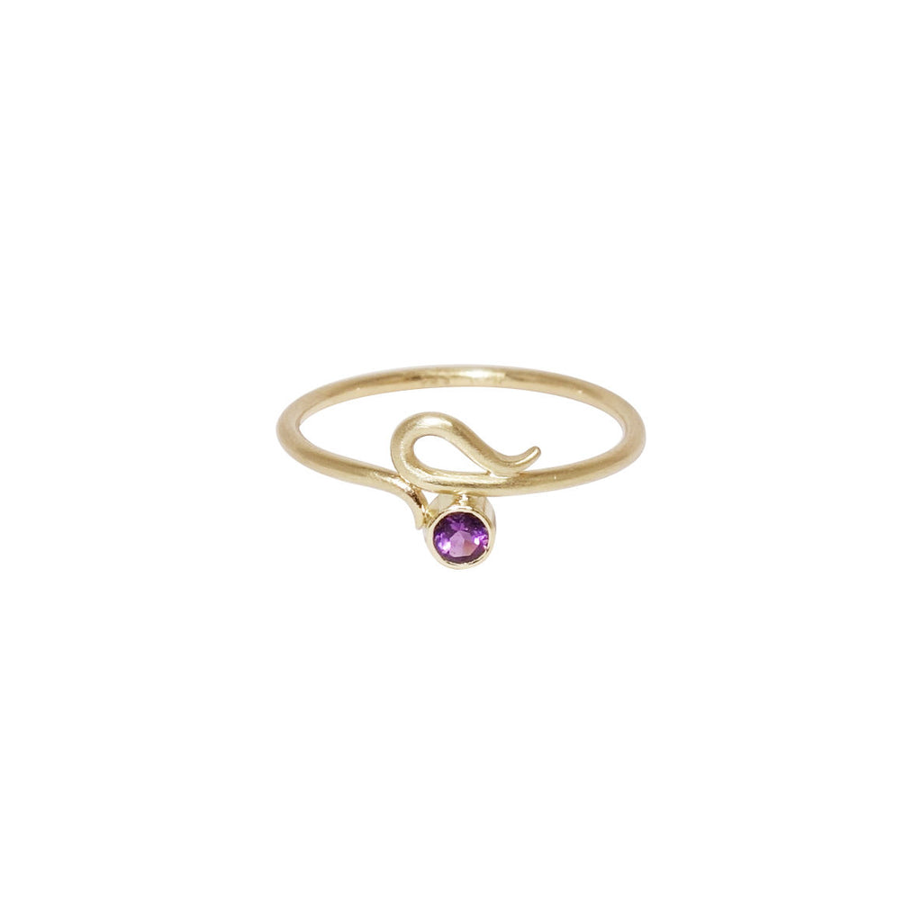 Gewundener Ring mit einem wunderschönen lila Amethysten. Der Ring besteht aus 14 Karat Gold und ist von Hand gefertigt. Farbe: Gold, Lila.