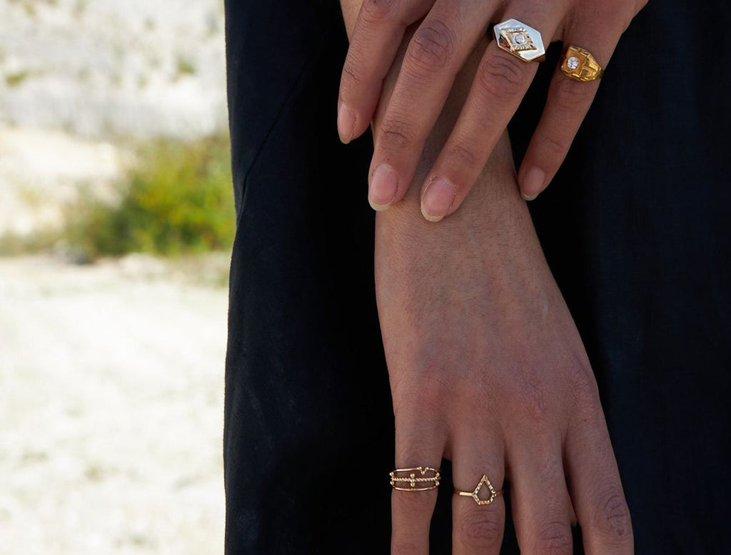 Combining warm, symbolic designs of the middle-east with colder, minimalistic aesthetics of Scandinavia, Kinz Kanaan creates a romance between classical and contemporary forms towards an emotional, never seen before Jewelry experience.