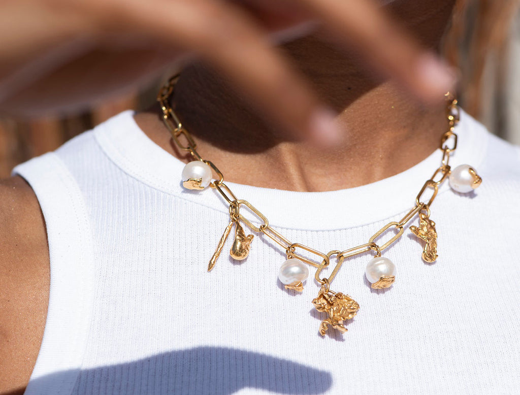 All silver and gold used in Les Mères jewelry is recycled. Overproduction and waste is avoided by ensuring that every handmade item, in their Netherlands or Bali ateliers, is produced in limited numbers. So every time an order is made, there is a small waiting period before delivery. The freshwater pearls are carefully sourced from a family-run ‘pearl farm’ in Shanxi Ahu, China. And the Les Mères packaging is made of recycled paper, with no plastic.