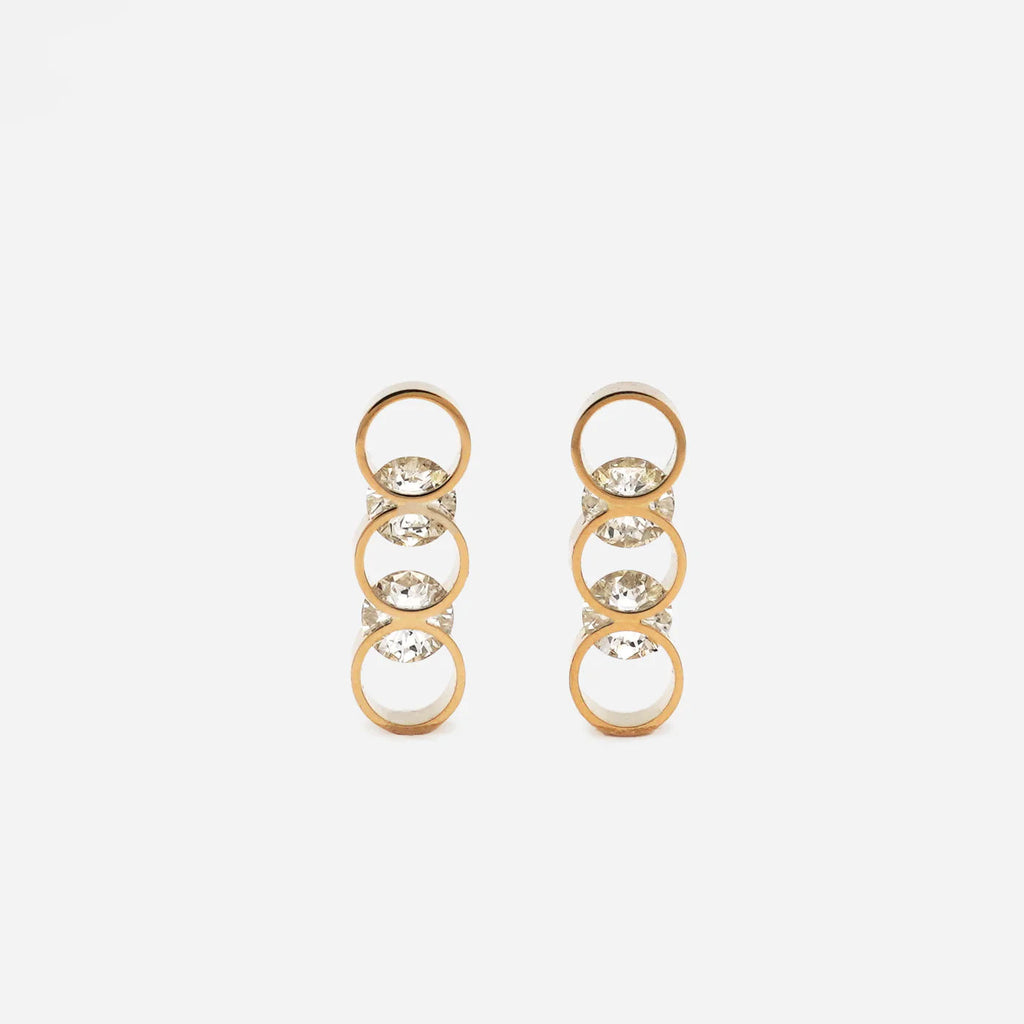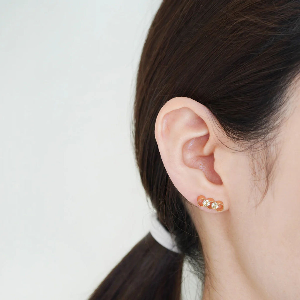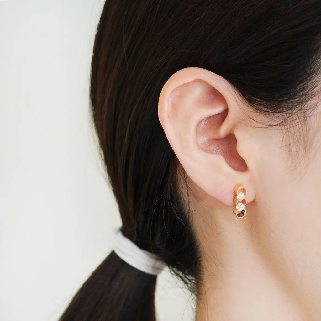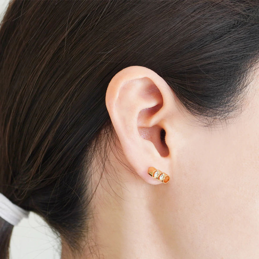 This pair of earrings was designed to celebrate Januka's 10th anniversary. The design incorporates the continuous flow of movement, with 2 diamonds set between pipes that are neither completely enclosed nor entirely exposed. The name "Con" derives from the prefix of the word "conjoin," meaning "together," reflecting the continuity of the pipes and diamonds. This is a Januka original setting.