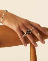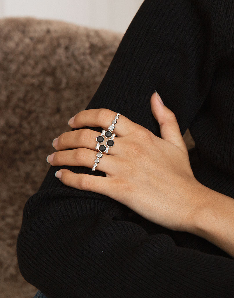 Stunning statement ring in solid recycled silver, adorned with hand-finished silver Mpingos and four 6 mm Mpingo Blackwood Mpingos. Designed to be worn on the middle finger, but it will also look amazing on your ring finger.
