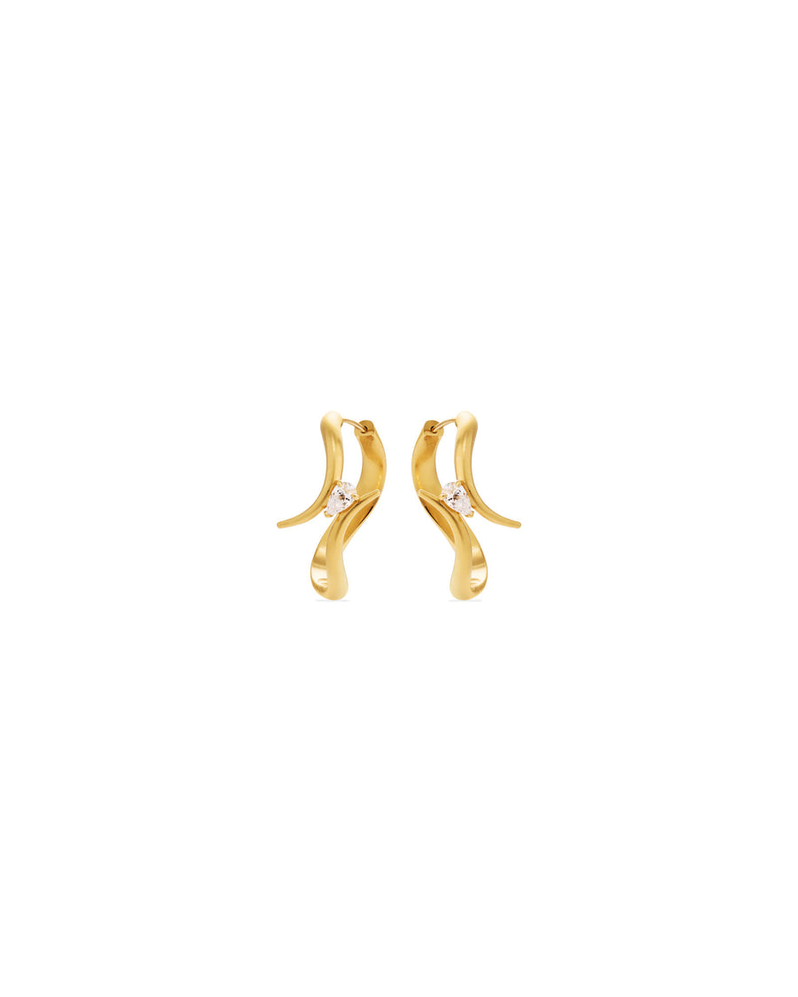 Satin gold hoops forming a sensual curve, set with a pear-shaped diamond. 8 g of recycled yellow gold 750/1000,2 pear-shaped diamonds of 0.2 carat