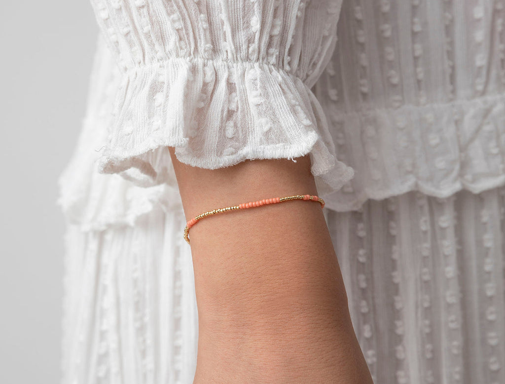 Asym Gold Plated Bracelet w. Peach BeadsAsym Gold Plated Bracelet w. Peach Beads