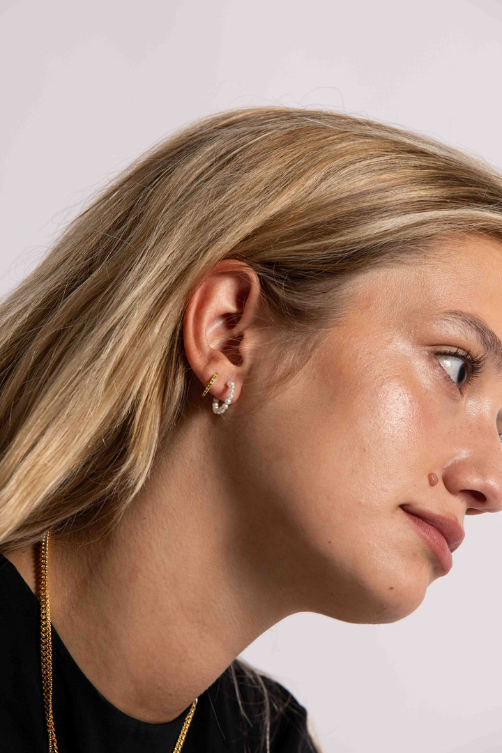 Ya sea una perla individual llamativa o un brillante anillo de perlas que adornan el marco de metal, este estilo es tan auténtico como se pone. Puede usarlo en el lóbulo o en cualquier lugar del lóbulo exterior de la oreja.