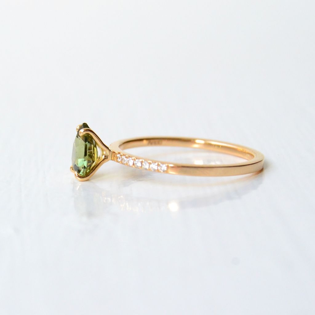 Delightful in its captivating blend of green sapphire and white diamonds, the Paliha Kola Ring in 18 karat yellow gold is an impressive partner for all your style moods. With its arresting colour and beautifully simple design, this ring will be striking when worn with both crisp formals and clean-cut casuals. Perfect for stacking with other rings, it can be effortlessly matched with other stunning pieces from across Anpé Atelier Cph’s collections. This ring is ready to be shipped in size 52, and will be delivered within 1-5 days. Should you want it in another size, please allow delivery time of 10-14 days.