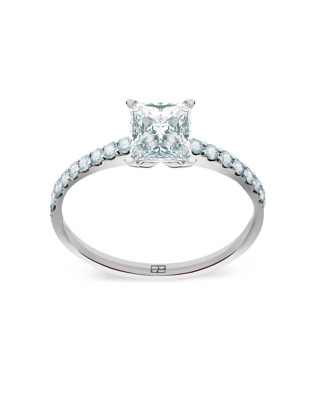 Magnificent,elegant,royal - this is our ring with an amazing cushion diamond of 0.7 CT and smaller,side diamonds. An exceptional engagement day crowned with a magical question through our unique jewelry will be remembered for years. Cushion cut is a sentimental return to the fashion of past centuries,which perfectly fits today's reality. Adding smaller diamonds on the sides of the central stone makes the luxury composition hard to forget. Fourteen carat gold,from which the ring was made,is available in three different variants: yellow,white or pink. BELLER jewelry is handmade with attention to detail and highest quality in our Warsaw workshop. Each diamond purchased at BELLER is certified by a gemological laboratory - GIA,HRD ANTWERP or IGI. (750/1000),set with a cushion-cut diamond center stone - 0.7 CT,and 14 side diamonds - 0.02 CT/ 0.28 CT total. (1.7x1.7 mm)
