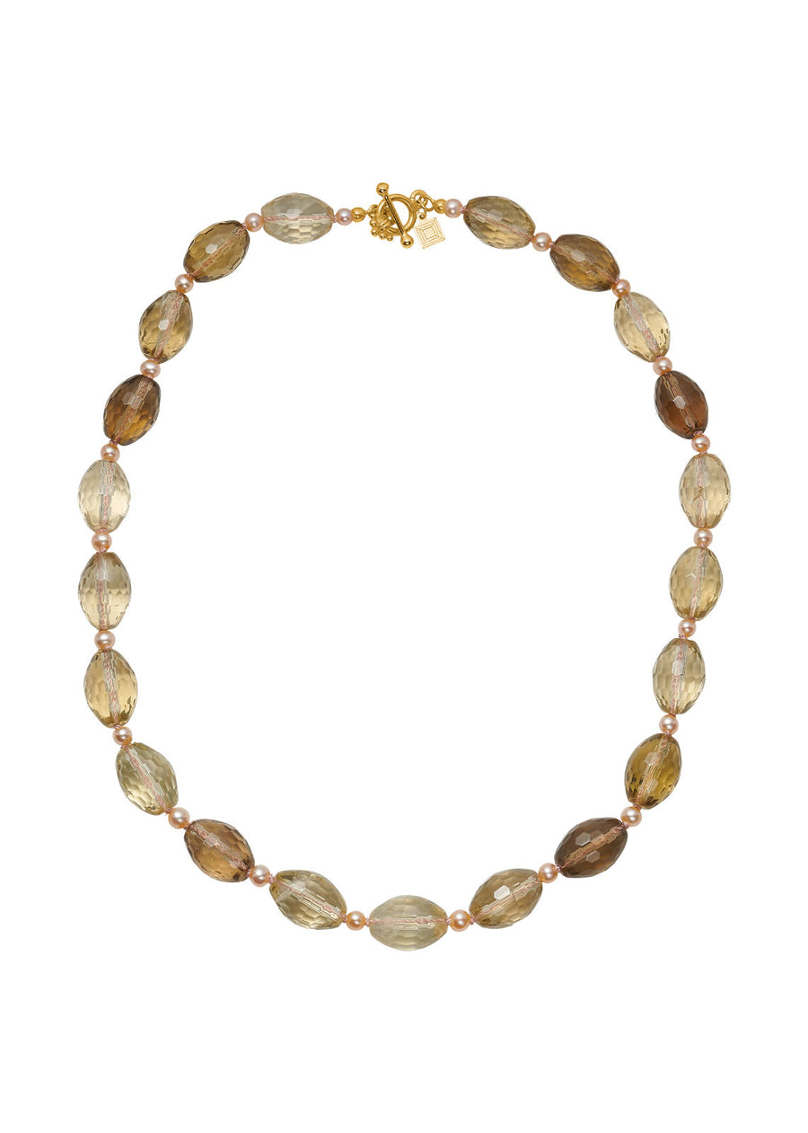 Carré JewelleryEvita Gold Plated Necklace w. Lemon Qartz & Pearl