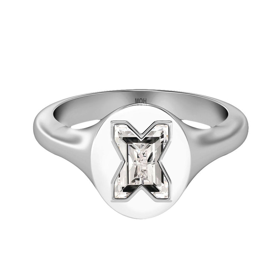 MOHAlphabet 18K Whitegold Initial X Signet Ring w. Solitaire Lab-Grown Diamond
