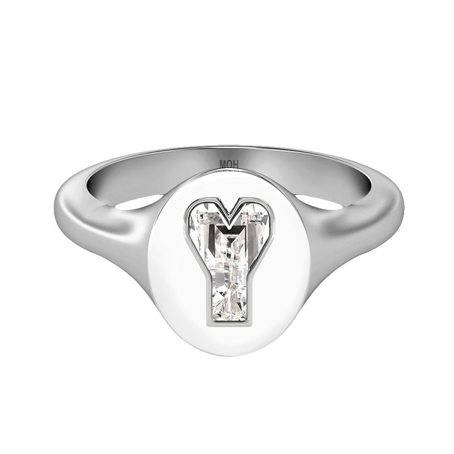 MOHAlphabet 18K Whitegold Initial Y Signet Ring w. Solitaire Lab-Grown Diamond