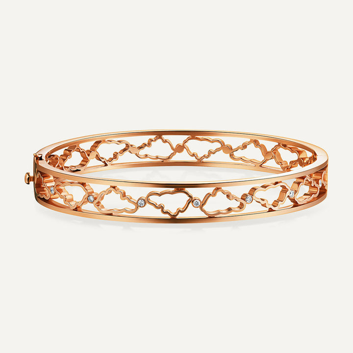 Les Joncs et Joncs manchette en or rose sertis de diamants sont parmi les plus séduisants. La belle teinte rosée de l'or rose et l'éclat des diamants se complètent si bien que les bijoux fabriqués dans cette variante d'or sont de plus en plus populaires, en particulier auprès des jeunes femmes. Les Joncs en diamant sont des bijoux de luxe qui sont spectaculaires en or rose.