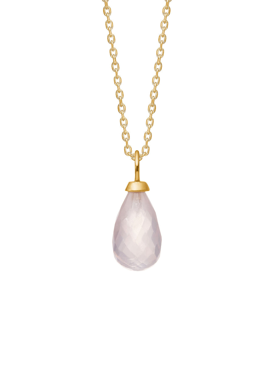 The lovely Facet Drop pendant is made in 10-karat gold, and is set with a drop of facet-cut Rose Quartz in a slightly milky quality. The Pendant belongs to the Gem Candy collection, that consists of beautiful gemstones in 10-karat gold cut like sweet candy. Rose Quartz is the rose-coloured variant in the Quartz family and is found in different nuances of soft pink. Rosa Quartz symbolises unconditional love, romance, self-love, and well-being. It is known as a love gemstone and is said to strengthen love relations. Rose Quartz is also traditionally gifted on 5 year wedding anniversaries.