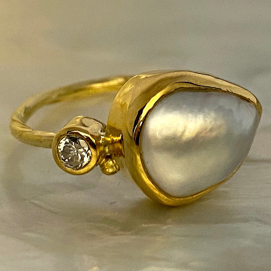 Bergsoe JewelleryCocktail 18K & 22K Gold Ring w. Pearl & Diamond