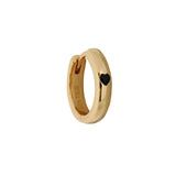 Huggie earring with a small black cubic zirconia heart. 18k gold plated 925 silver. The earring is sold as single. Dimensions: L: 1,3cm W: 0,3cm