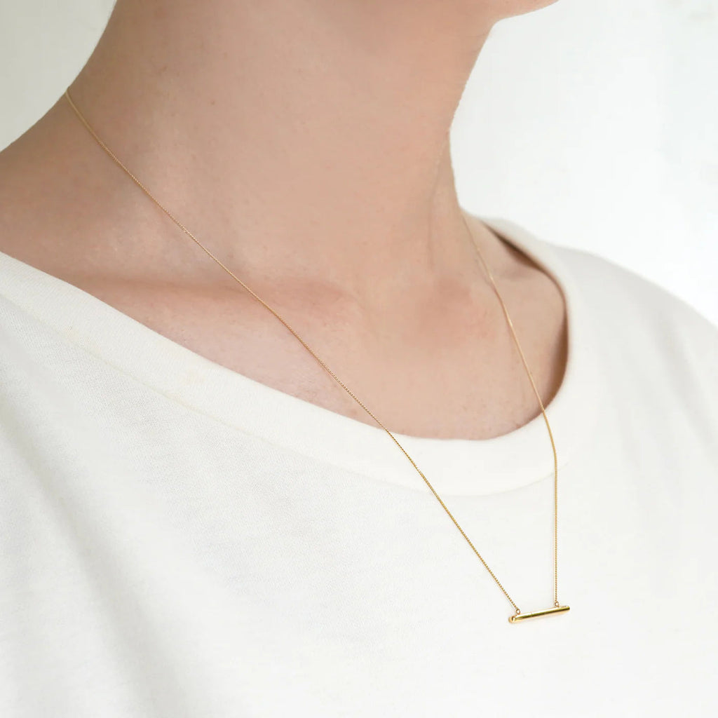 This necklace features a simple golden bar in 18K gold that can be effortlessly paired with other necklaces from your personal collection.