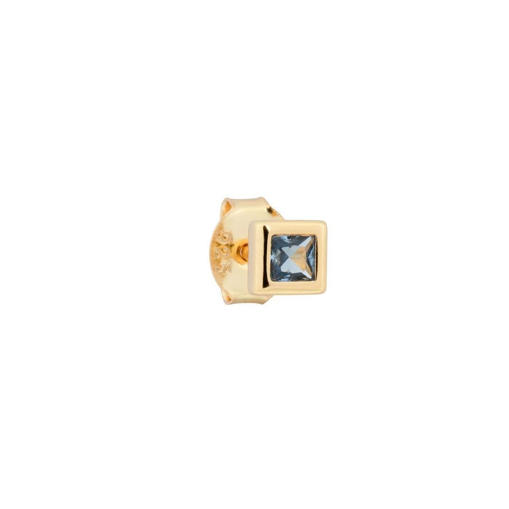 Stud earring with a light blue cubic zirconia. 18 carat gold plated 925 silver. Length: 0,4 cm, Width: 0,4 cm