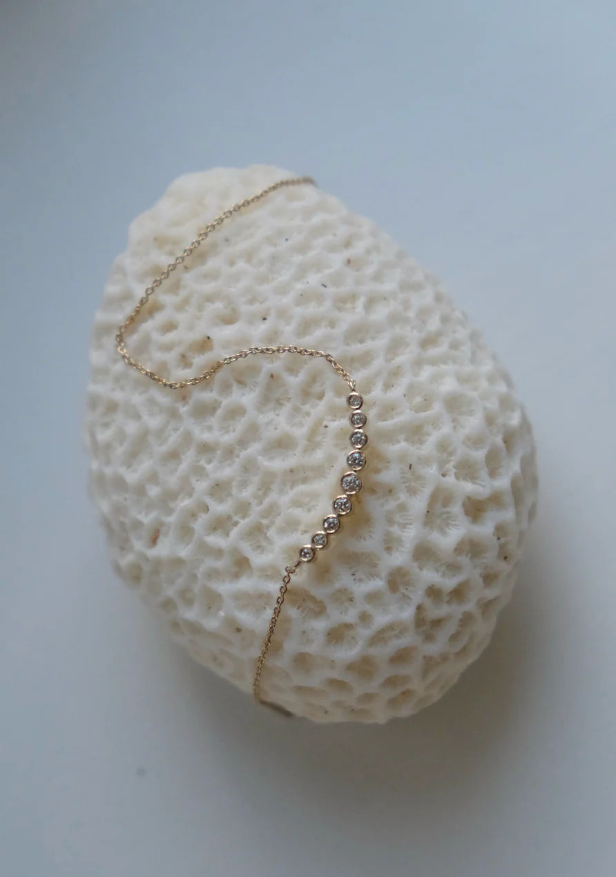 This Diamond Necklace features graduating Diamonds with adjustable chain set in bezel setting. Length 42 cm