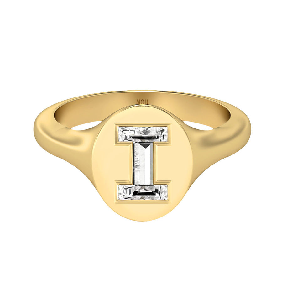 MOHAlphabet 18K Gold Initial I Signet Ring w. Solitaire Lab-Grown Diamond
