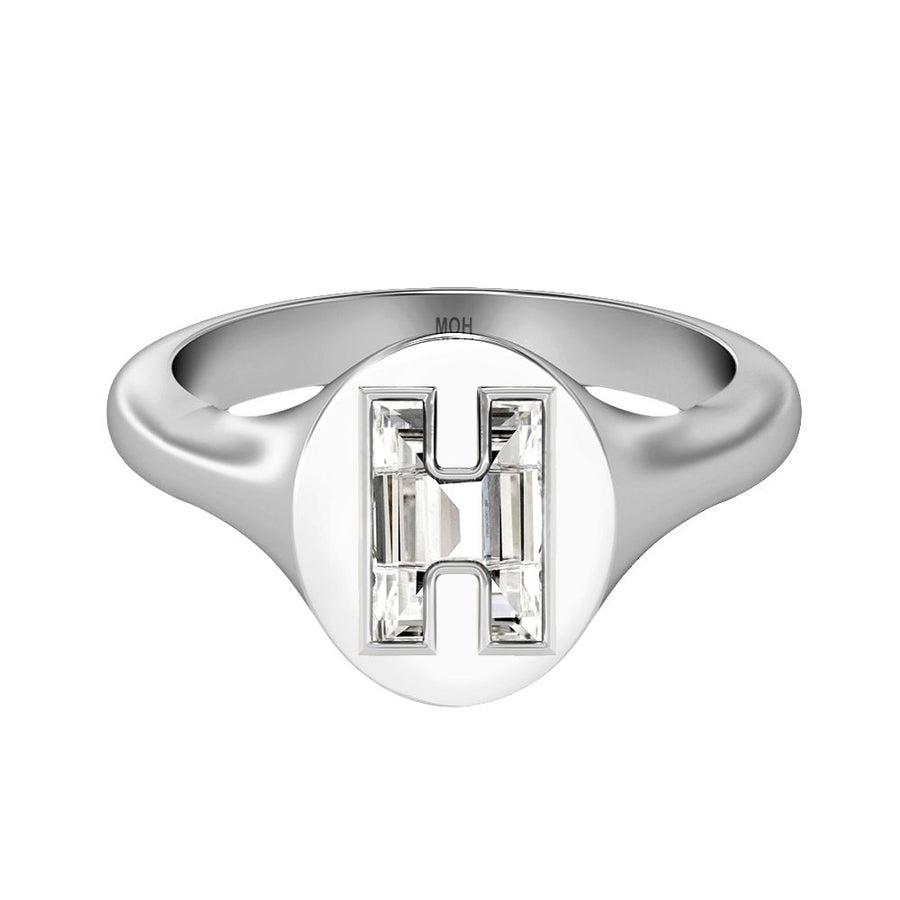 MOHAlphabet 18K Whitegold Initial H Signet Ring w. Solitaire Lab-Grown Diamond