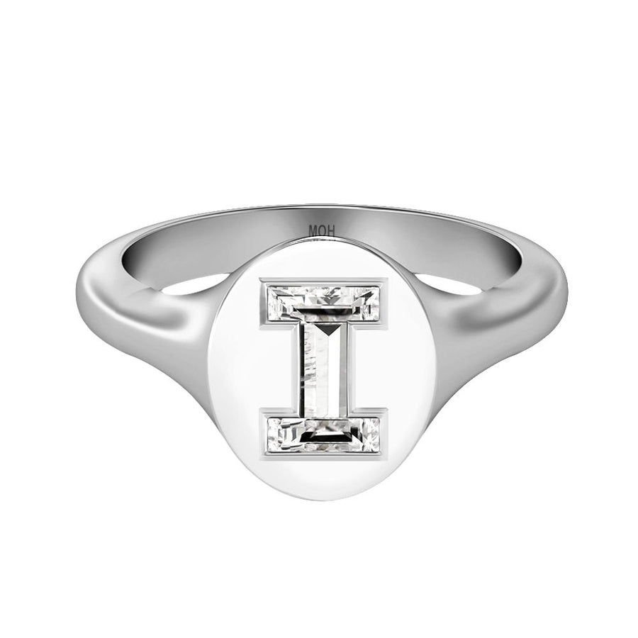 MOHAlphabet 18K Whitegold Initial I Signet Ring w. Solitaire Lab-Grown Diamond