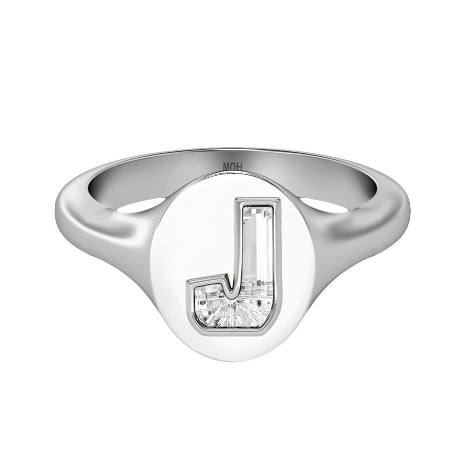 MOHAlphabet 18K Whitegold Initial J Signet Ring w. Solitaire Lab-Grown Diamond