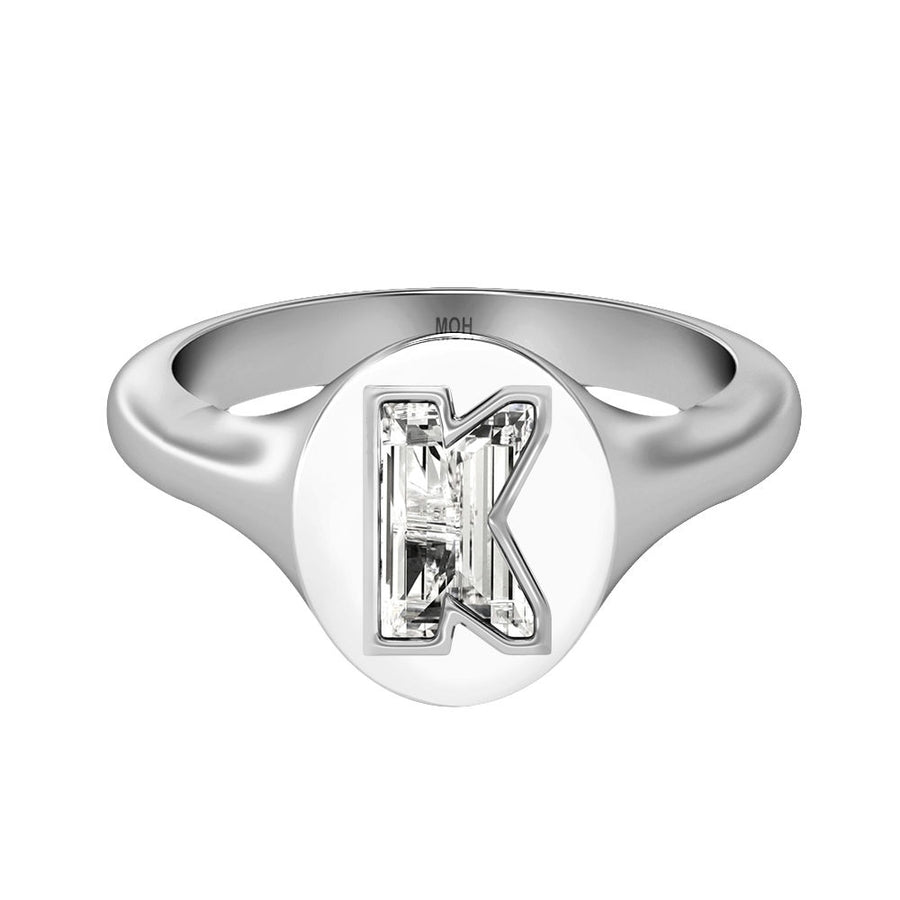 MOHAlphabet 18K Whitegold Initial K Signet Ring w. Solitaire Lab-Grown Diamond