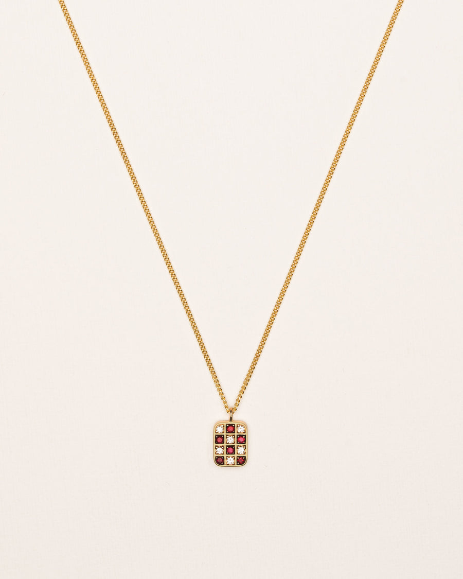 Wouters & HendrixChessboard 18K Gold Necklace w. Diamonds & Rubies
