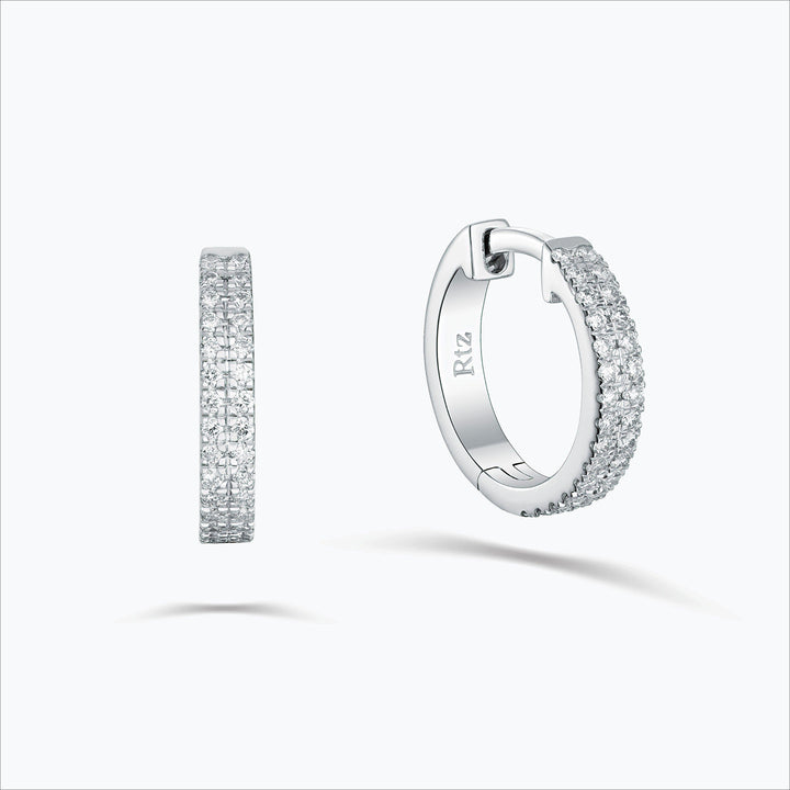 Double Line 18K White Gold Hoops w. DiamondsDouble Line 18K White Gold Hoops w. Diamonds