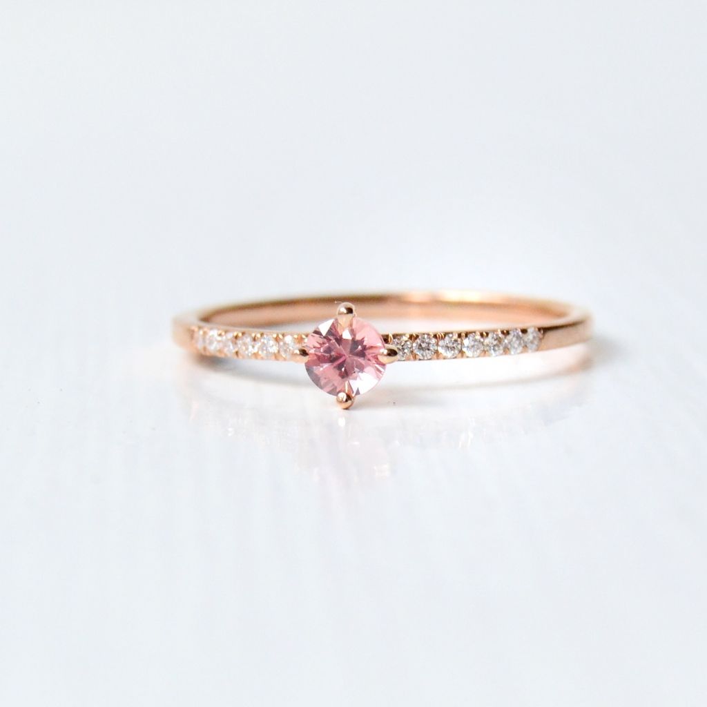 The Hima Pic Ring from Anpé Atelier Cph is a unique, one-of-a-kind creation in 18 karat rose gold. Part of the Classic Complexity Collection, this ring features a natural unheated peach sapphire and white diamonds. The made-to-order Hima Pic Ring comes with a certificate and will take about 6-10 weeks for delivery after you place the order.