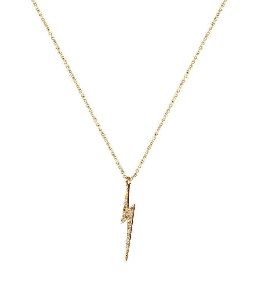 Striking yet subtle, the shape of a lightning brings the perfect balance between both. Set with stones that add a shimmering glimpse when worn around the neck.