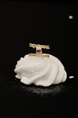 February Birthstone 18K Gold Ring w. Amethyst & Sapphires