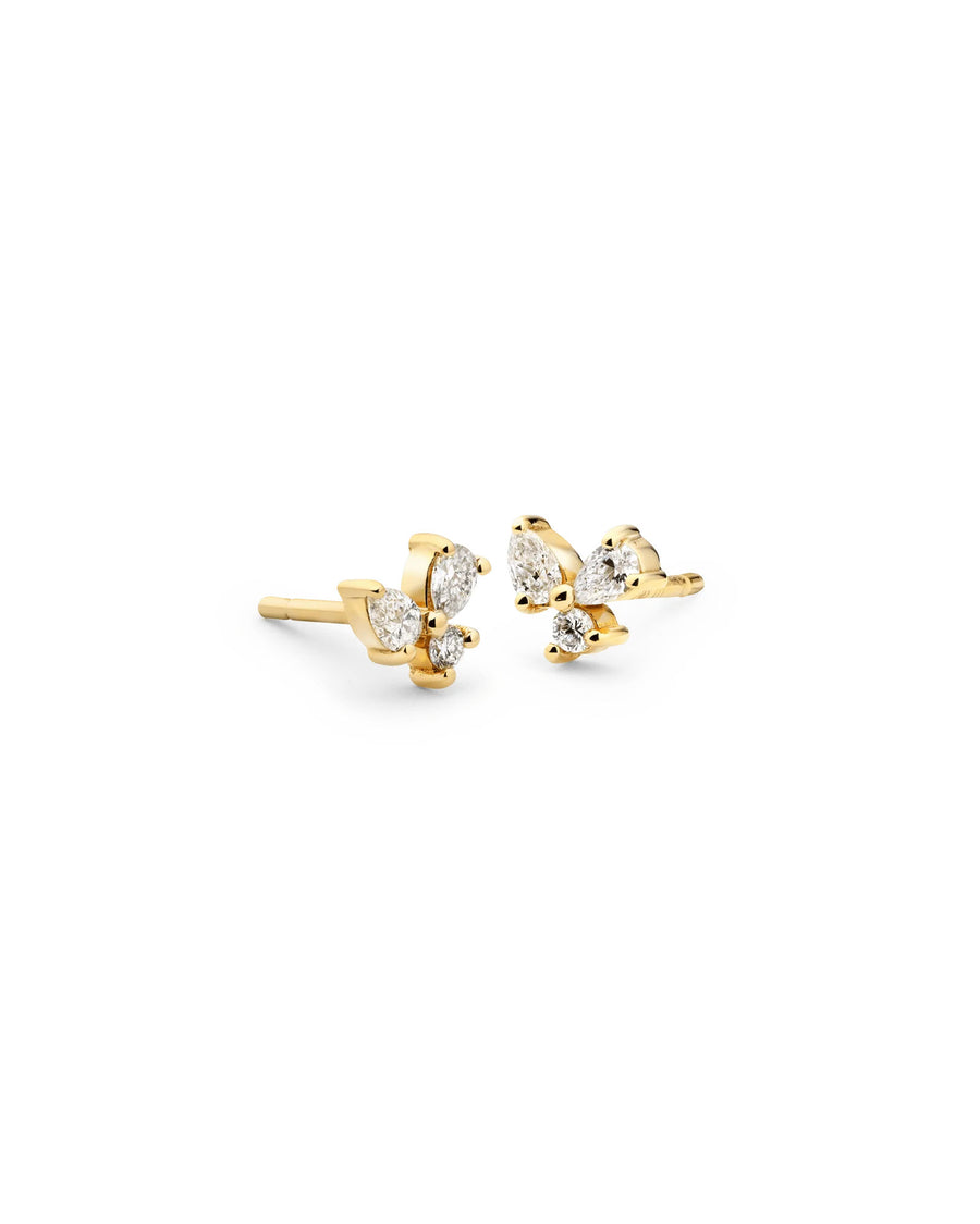 AKIND's Diamond Cluster Studs blends timeless elegance with sustainable luxury. Crafted with lab-grown diamonds and 100% recycled gold. Each stud features two pear cut diamonds and one brilliant cut diamond creating a harmonious ensemble that takes your ear stack to a new level.