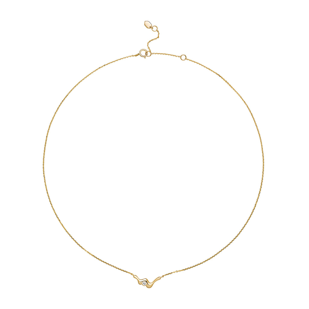 A petite little necklace to float around your neck. A small fluid pendant with a 2,5 mm diamond is attached directly on to the chain. Diamond: LGD - FG/SI.