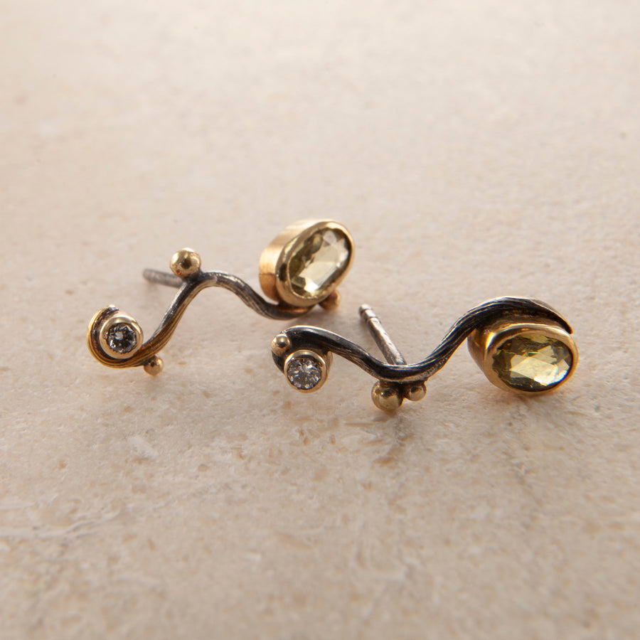 Bergsoe JewellerySeafire 18K, 22K & 24K Gold & Silver Earrings w. Sapphire & Diamond